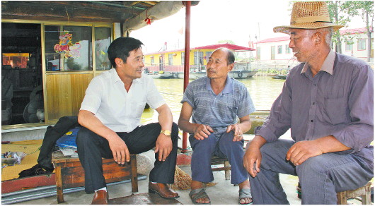 “農(nóng)村的工作,沒(méi)有黨的領(lǐng)導(dǎo)不行;關(guān)鍵時(shí)刻,共產(chǎn)黨員的先鋒模范作用不可忽視。”孫茂東生前常說(shuō):“不敢亮明身份就是不敢擔(dān)責(zé),就是怕群眾監(jiān)督,就是不合格黨員!”現(xiàn)在,渭河村黨員佩戴黨徽,住家船頭懸掛黨旗,事事模范帶頭成為常態(tài)。